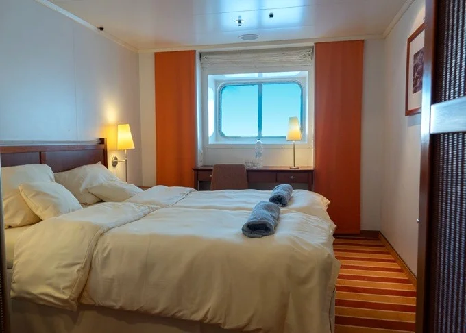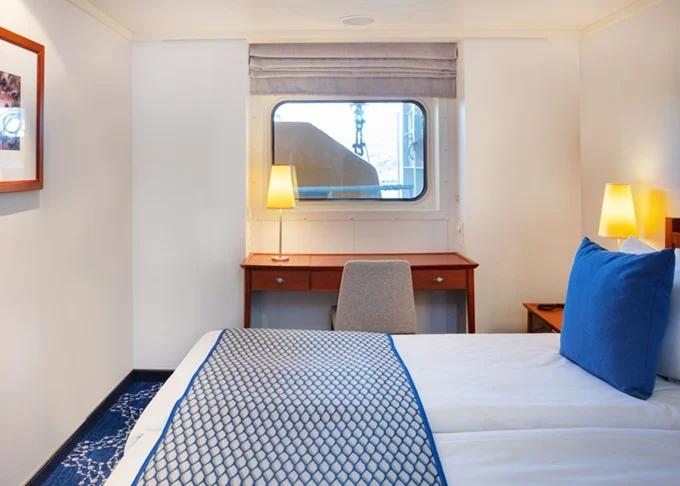 XA - Kajuta s oknom Cosmos 13,5 m². Neotvárateľné okno. 4,5. paluba. Max 2 osoby. 1 398 € 699 € za osobu