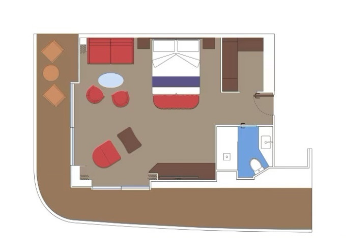 | YC3 - Yacht Club Royal Suite s terasou a s vírivou vaňou 51-59 m² / balkón s vírivkou 42-51 m². Oddelená obývačka a spálňa, šatník, kúpeľňa s vaňou. Max 4 osoby. 16/18. paluba. Cenový model MSC Yacht Club. Basic fare | 11 130 € 11 130 € za osobu | ||