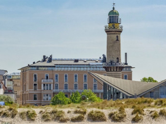 Maják Alter Leuchtturm z roku 1898 je doteraz funkčný. V letných mesiacoch sa naň dá vystúpiť a z výšky 37 m sa pokochať výhľadmi na Baltické more a severnú časť mesta Rostock. Hneď pri ňom sa nachádza komplex Teepott Leuchtturm s reštauráciami, suvenírovými obchodíkmi a výstavou zo zbierok cestovateľa a dobrodruha Reinholda Kastena.